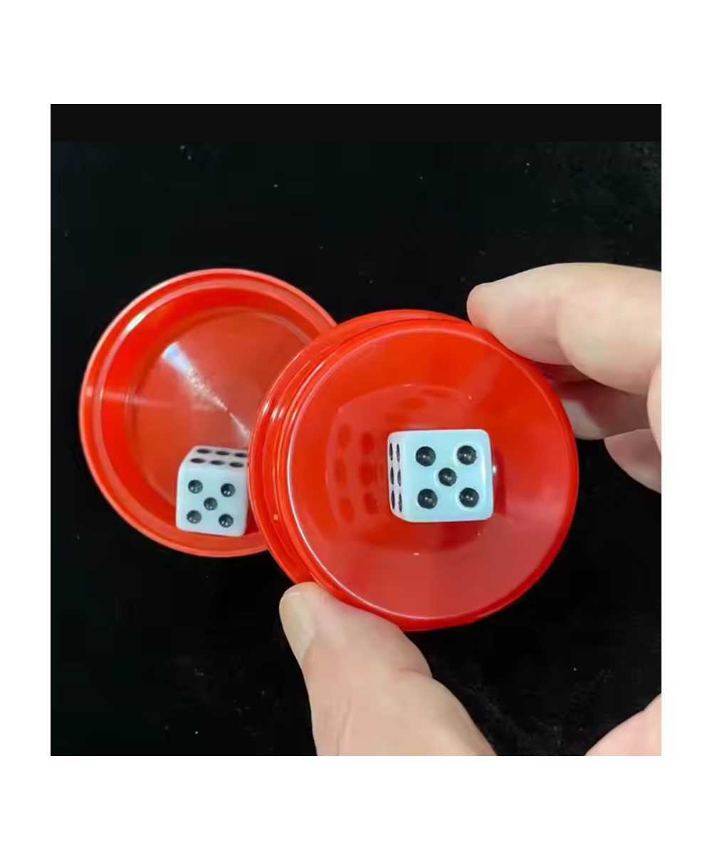 INSTRUCCIONES: Muestra a tu público los dados: entrega un dado a uno de tus audiencias y pídele que los lace 3 veces y que elija un número d eun dado y coloque el dados con ese número mostrado. No te importa leer con este truco, por lo que los dados deben estar a la vista. A continuación, coloca cuidadosamente el otro dados en la caja roja con el número correcto hacia abajo. Es posible que tengas que hacer alguna distracción mientras lo haces para que no se vea obvio. Coloca la tapa en la caja y agítala dos veces, siempre es bueno tener algo de charla cuando lo hagas, pero no es esencial. A continuación, abre la tapa , para mostrar que se esta mostrando el mismo número.