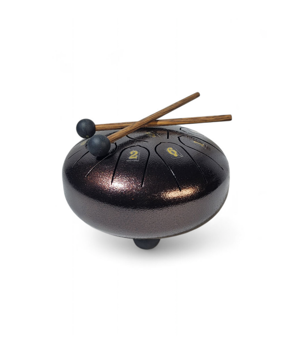 l Tambor Feliz de acero (6 pulgadas, 11 tonos) es un instrumento melódico y terapéutico ?. Sus tonos puros favorecen la meditación, la limpieza energética y la conexión interior ?. Hecho en acero de alta calidad, ofrece un sonido claro y armonioso, ideal para sesiones de arte terapia, musicoterapia, relajación o simplemente disfrutar en casa.